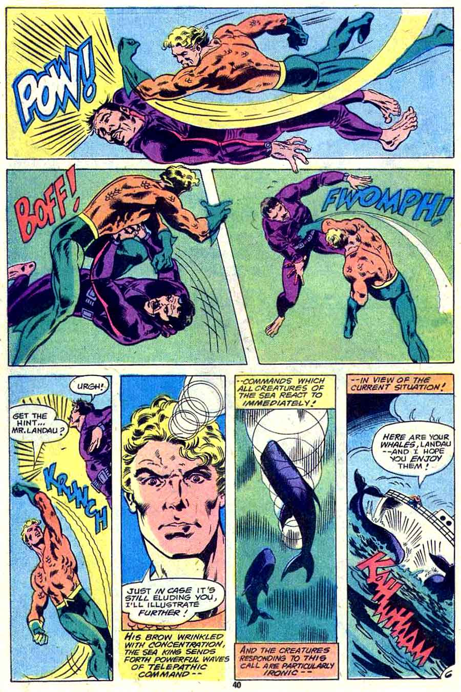 Adventure Comics v1 #460, 1978 – Continuing the saga of the New Gods, Darkseid tries to be the first to pierce the fabled Final Barrier in space. In a separate feature, Aquaman investigates the killing of whales off the coast of Coney Island. Both drawn by Don Newton, the first story is almost over delineated. Perhaps due to enthusiasm, the figures are more contorted than usual. By contrast, the Aquaman tale is more robust. Depth and clarity are enhanced due to Dan Adkin’s seasoned inks (see interior page below). This issue includes art by Jim Aparo, Joe Staton and Jack Abel, cover art by Ross Andru and Dick Giordano. This is #2 of 8 Adventure Comics issues by Newton (sans reprints).