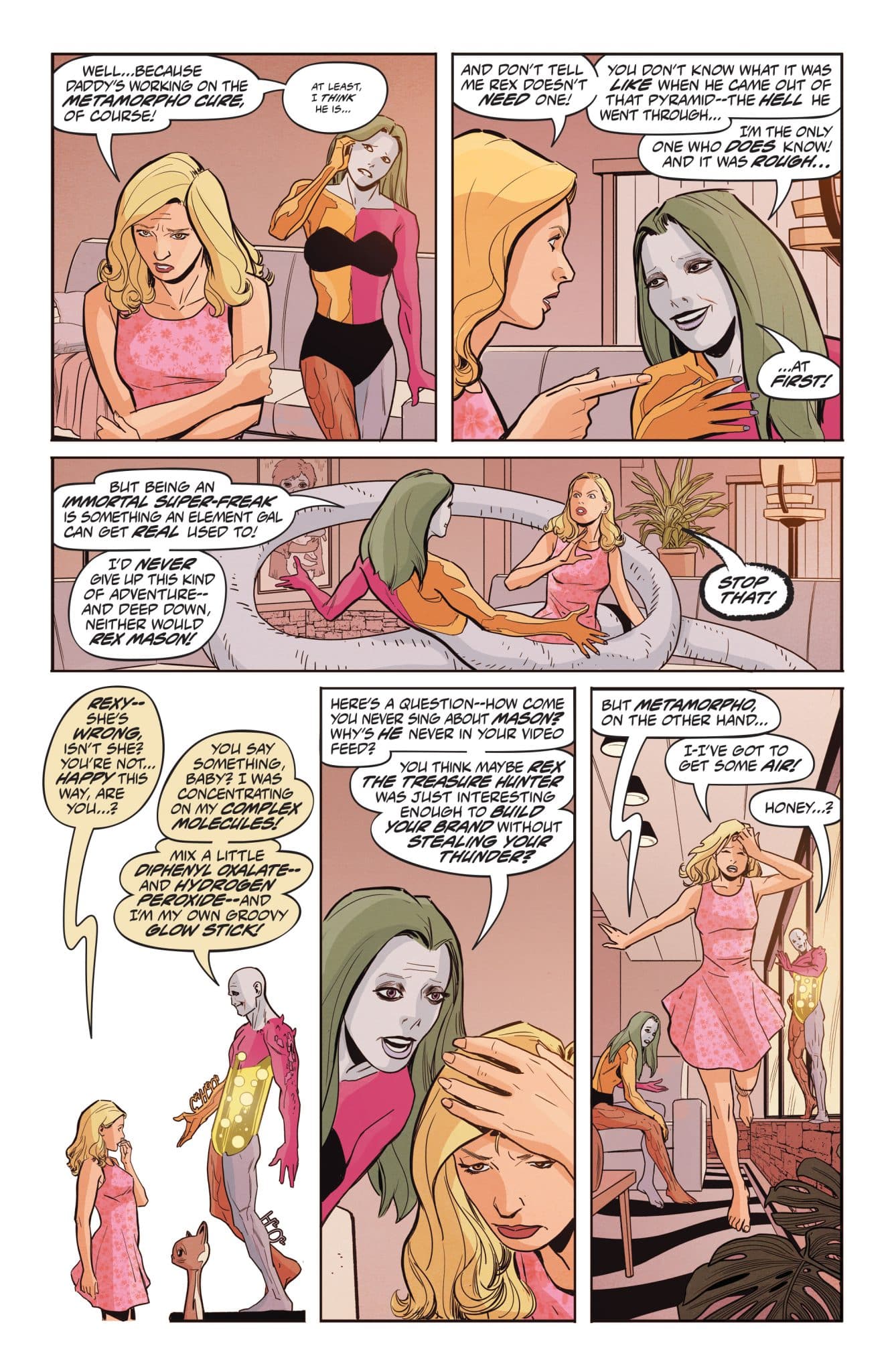 Who could win the heart of the most fabulous freak of all? Only one more fabulous still…the switched-on Sapphire Stagg! But when Metamorpho and Element Gal join superstar Sapphire in the spotlight, they find themselves in the gunsights of a deadly rival for her cultural crown–one mendaciously managed by the maliciously malevolent…Mad Mod! But what’s Ol’ Staggsy’s connection to the coolest cat in crime…? Al Ewing and Steve Lieber have the answers–as the New Age of Metamorpho marches on!