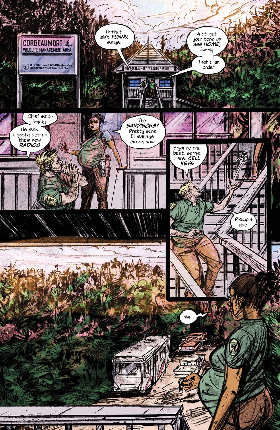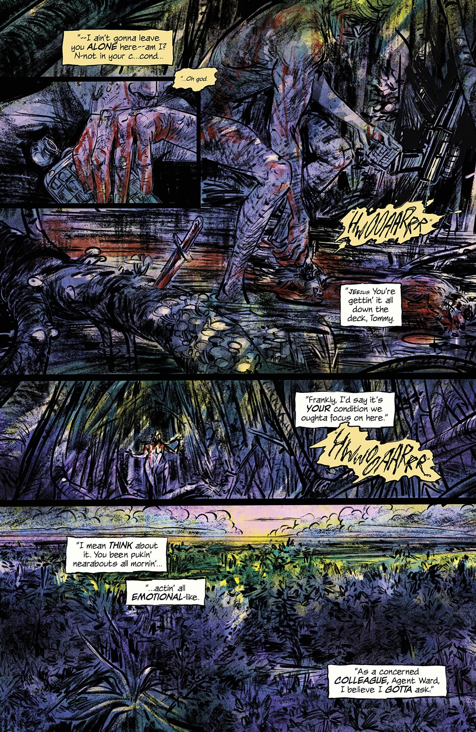 From the brilliant minds of writer Si Spurrier, artist Vanesa Del Rey, colorist John Starr, letterer Hassan Otsmane-Elhaou, and designer Emma Price, comes a spicy new Cajun crime miniseries set in the sweaty Southern swamps. The Voice Said Kill is Fargo meets Deliverance in this trippy fever-dream thriller, juxtaposing gorgeously pastel sunsets and vibrant hues of the wilderness with shadowy nightmares and dark deeds. Featuring stunning covers by Del Rey, Christian Ward, and Tula Lotay, the first of four extra-juicy issues hits shelves this July 23.