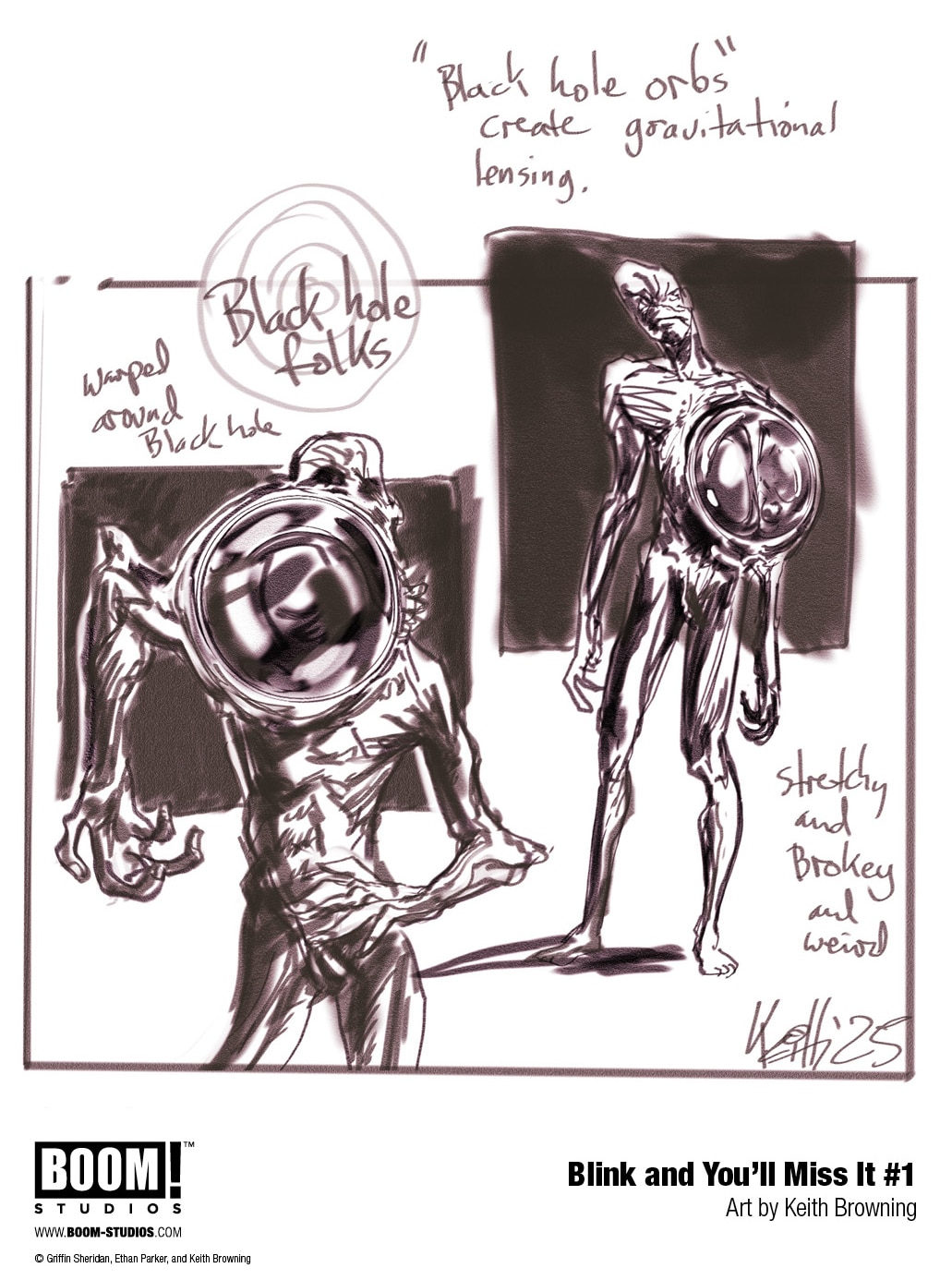 Blink and You’ll Miss It #1 features main cover art by series artist Keith Browning, and variant covers by acclaimed illustrators Christian Ward, Rebeca Puebla, and Elsa Charretier. It comes to comic shops August 6, 2025.