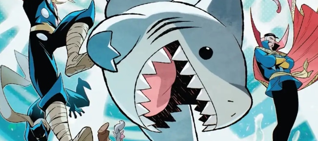 FRIENDS AND RIVALS! Hot off his star-making appearance in MARVEL RIVALS, everyone’s favorite walking fish boy has bitten off his first starring miniseries! Join Jeff as he teams up with many of the friends he’s made over the years and out smarts more than a few rivals along the way…and this time, he’s got some all-new abilities on his side! Join Jeff co-creator Kelly Thompson and artist Tokitokoro as they sharpen the teeth of the undeniable star of the entire Marvel Universe – love him or hate him, you know you want to see MORE JEFF!