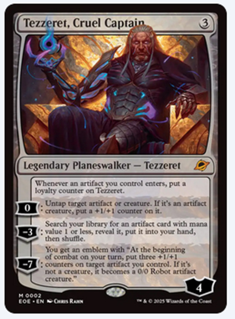 Edge of Eternities offers players an array of new cards for players to sink their teeth into.  The most interesting new card type added to the game is new artifact vehicles called Spacecraft, which is almost a natural inclusion for a booster set that is set is a science fiction space plane that is reminiscent of Dungeons & Dragon’s Spelljammer (see “Spelljammer“).  Along with the addition of Spacecraft as an artifact type, there will be a change to Commander rules.  WotC designers have updated the Commander format rules so that legendary cards with a printed power and toughness can be used as a player’s Commander.