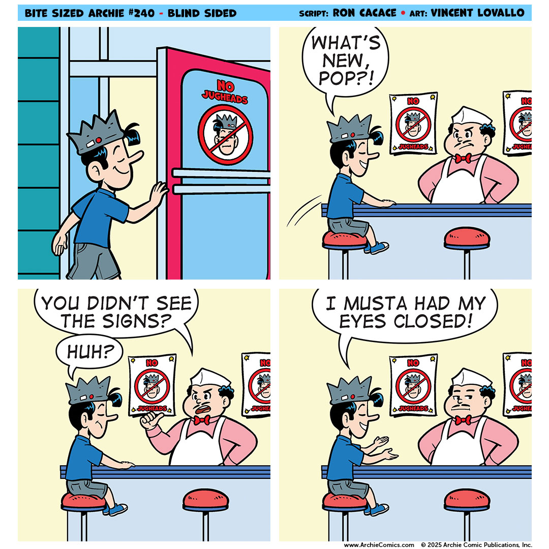 BITE SIZED ARCHIE is written by Ron Cacace and drawn by Vincent Lovallo. Check back every Friday for a new comic and follow @ArchieComics on Twitter for updates! Read every BITE SIZED ARCHIE comic on Tinyview!