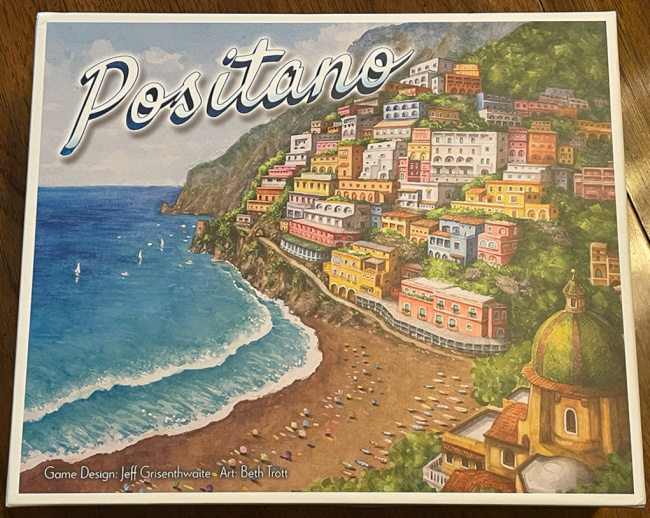 Overall: I am not, in general, a fan of bidding/auction games. But the mechanisms of Positano minimize the features of the genre that I dislike and the puzzle-like challenge of using a single card to bid for three things at once create a playing experience that I quite enjoyed. And others in my group who are big fans of bidding games had as good a time playing as I did. The playing time and pacing of the game means that it is unlikely to wear out its welcome even after a number of plays. The included solo variant offers a compelling challenge that requires careful balance and forethought to find success.