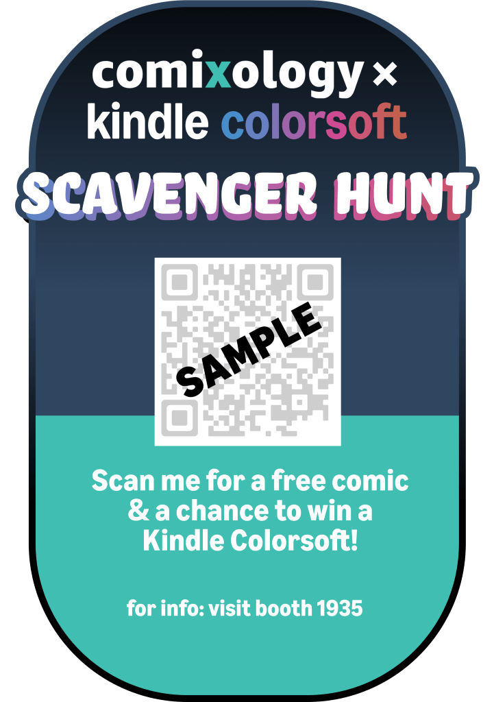- The Comixology x Kindle Colorsoft Scavenger Hunt: Join the search to find all the QR codes at our publishing partners’ booths for a chance to win free digital comics, Kindle discounts, and be entered to win a Kindle device.