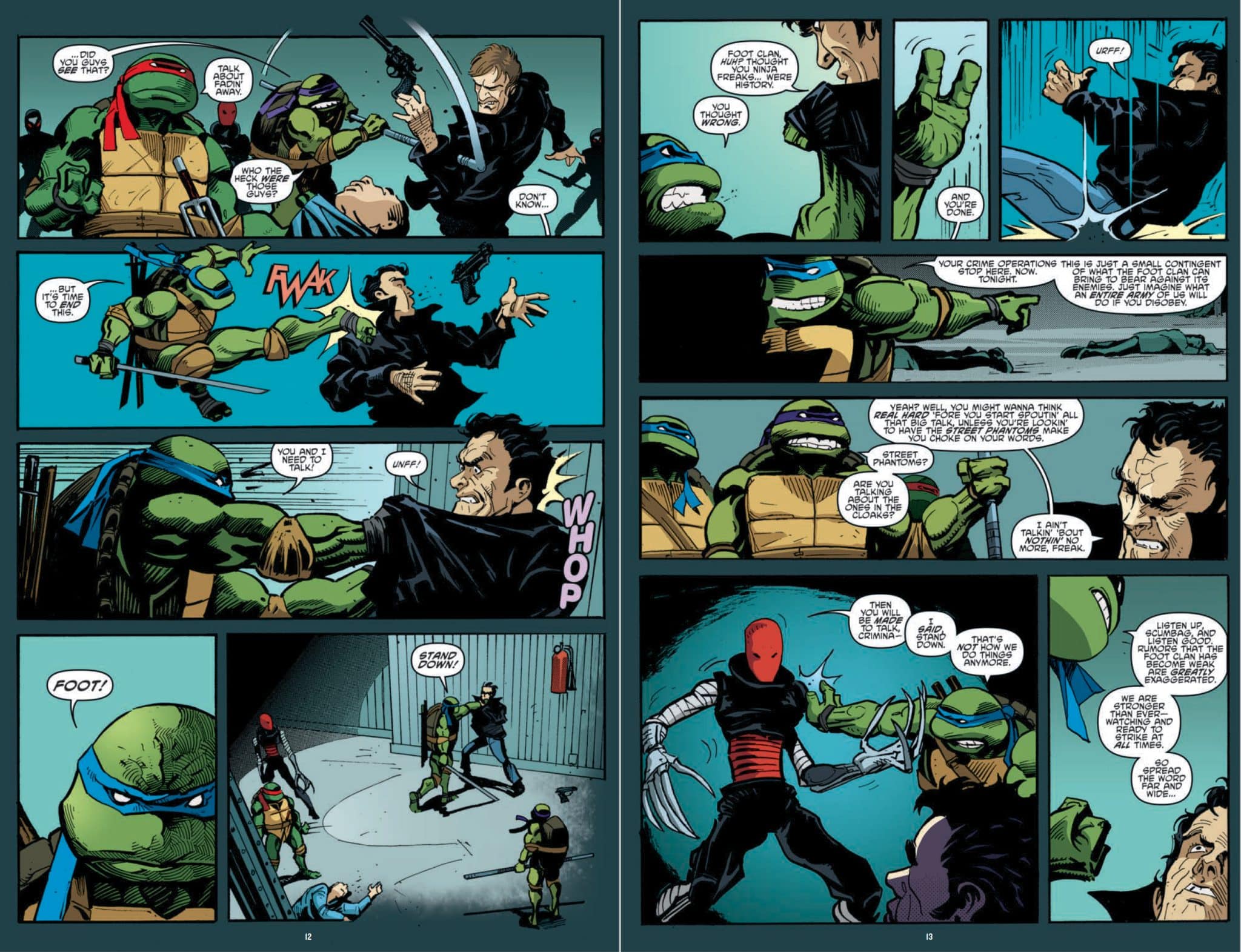 A new age begins for the Turtles as the epic events of the past have created new opportunities for the future, but new dangers as well. While they continue to get used to a world leading the Foot Clan post-Shredder, they return to the Technodrome to monitor the revival of the Utroms on Burnow Island and are surprised to meet a new mutant—Leatherhead! Will the mysterious mutant be friend or foe? Plus, Kitsune still poses a threat, and a new group, the Street Phantoms, enters the fray!
