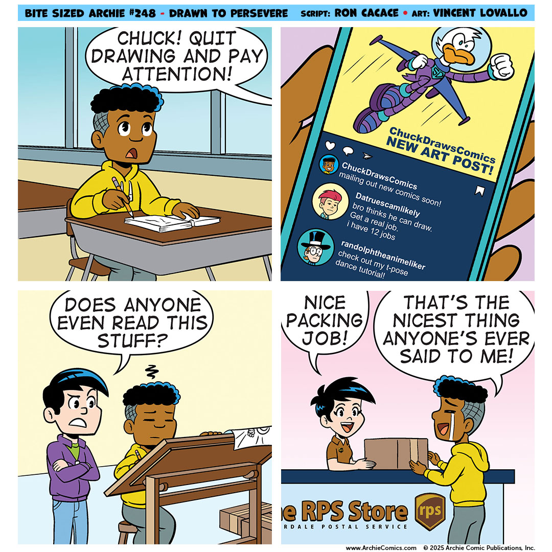 BITE SIZED ARCHIE is written by Ron Cacace and drawn by Vincent Lovallo. Check back every Friday for a new comic and follow @ArchieComics on Twitter for updates! Read every BITE SIZED ARCHIE comic on Tinyview!