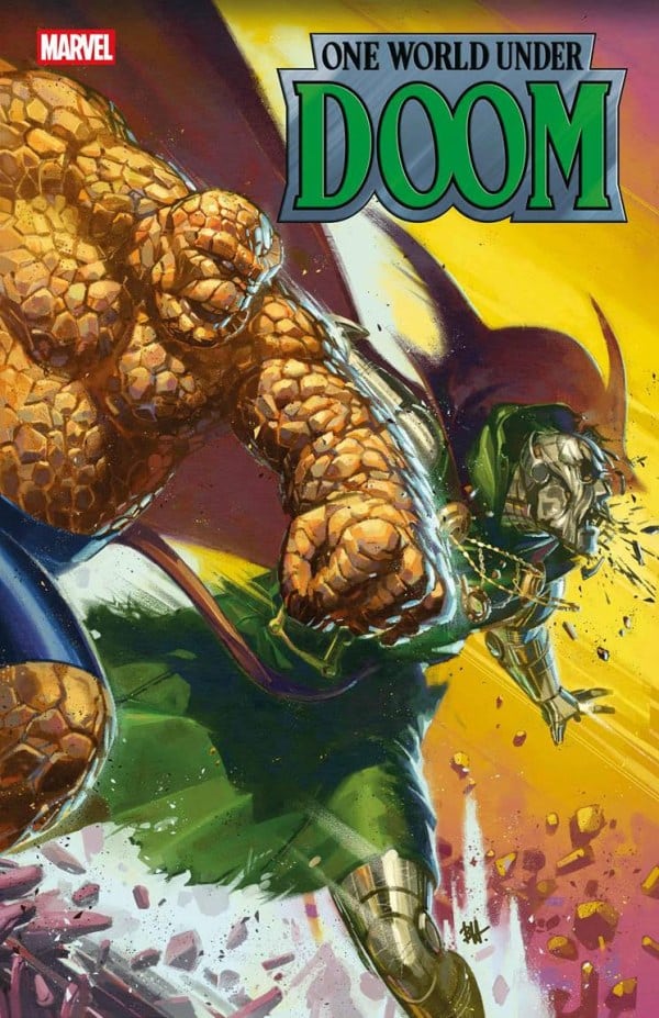 Doom battles the combined might of an entire world to maintain his control: But can even he stand against the Avengers, the X-Men, the Fantastic Four… and every other hero on Earth? It seems like all hope is lost: until a desperate gambit gives the heroes exactly what they need to win! But Doom has a desperate gambit of his own: one that, though it’s never been attempted before, combines all his sorcery and science into a single brutal attack. It all leads to a shocking conclusion — with consequences that will reverberate throughout the entire Marvel Universe in this penultimate issue!
