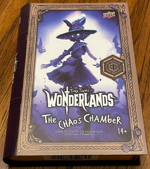 I was unfamiliar with Tiny Tina’s Wonderland before I was introduced to this quirky little card game, so I didn’t know what to expect.  Nonetheless, I was amused by its off-kilter sense of humor and the odd juxtaposition of fantasy RPG and trick-taking card game elements, inspired by the first-person shooter game.  But that was no obstacle in tackling The Chaos Chamber.  The question is, does this little spin-off stand on its own?