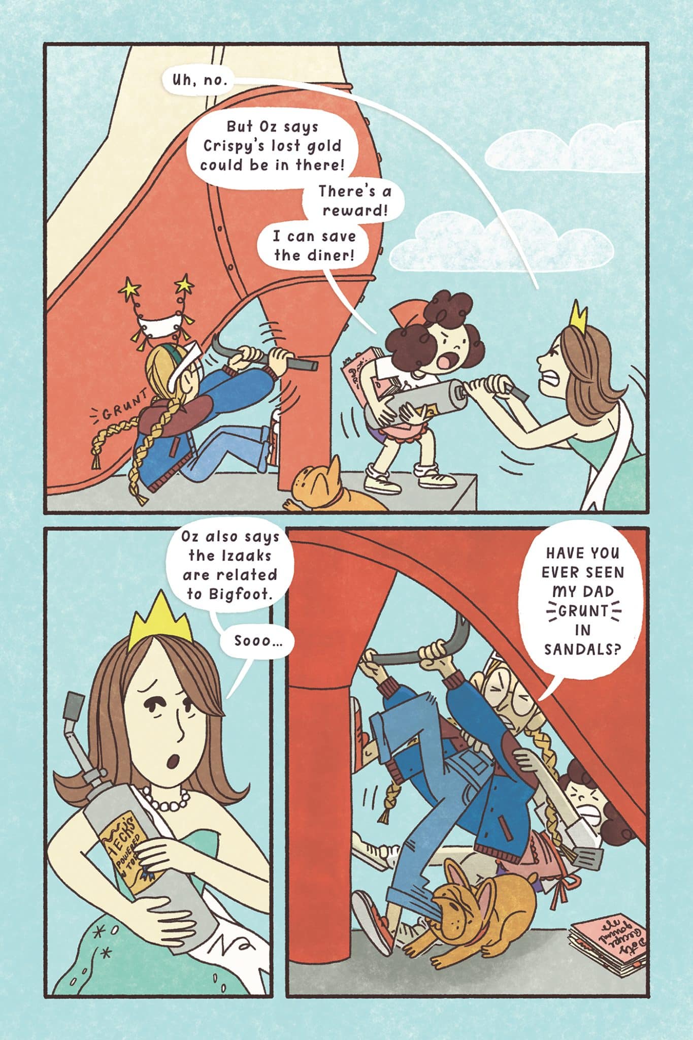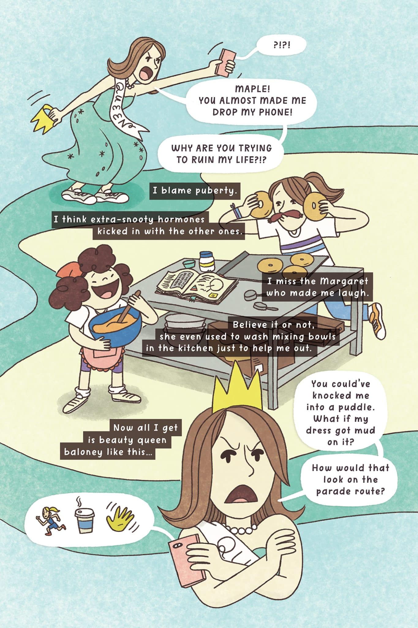 This June, meet Maple and Margaret Sanford, two sisters who couldn’t be more different. Ten-year-old Maple is a pancake-obsessed griddle cook determined to save their grandma’s failing restaurant, Dot’s Diner. Margaret is a college-bound beauty queen who can’t wait for their mom to sell the run-down restaurant. On the last day before Dot’s Diner will be sold to the town’s multimillionaire mogul, the girls are thrown into a dangerous food-themed treasure hunt, looking for gold left by runaway outlaw Crispy Cruller. Joined by a trusty friend, a helpful robot drone, and an adorable pup, Maple and Margaret will dive deep into the twisted caves and caverns underneath their town facing one syrup-sticky flapjack trap after another. With nothing more than their grandma’s cookbook clues to guide them, will the Sanford Sisters be able to put their differences aside, find the loot, and save Dot’s Diner before it’s too late?