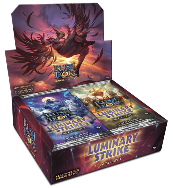 Upper Deck will release the third set for its Rush ofIkorr TCG, Act 1 Part 3 – Luminary Strike Booster, on April 30, 2026.  The new 129-card booster set adds new Avatars Ra, Khonsu, Helios, Selene, Amaterasu and Tsukuyomi, and champions of the darkness and light Apep the Lord of Chaos, Icarus, and the denizens of the Maya underworld, Xibalba.