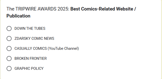 Remember to vote for Graphic Policy for “Best Comics-Related Website/Publication” in the 2025 Tripwire Awards