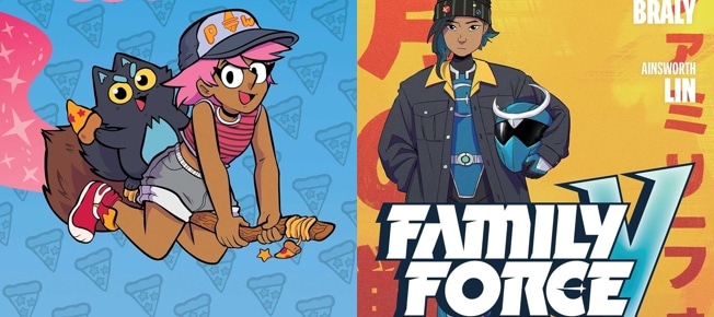 Looking for graphic novels as gifts for younger readers? Skybound Comet has just what you’re looking for with graphic novels like Pizza Witch and Family Force V!