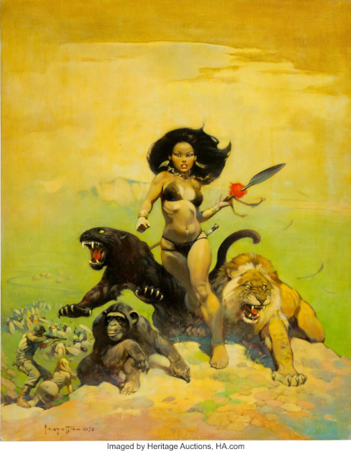 A second Frazetta painting, The Moon Men, created for the cover of the Ace edition of the Edgar Rice Burroughs novel, sold for $718,750. Both Frazetta paintings were from the Howard Lowery Fantasy and Science Fiction collection. Three other less significant Frazetta pieces from the same collection sold for a combined $512.500 in the auction.