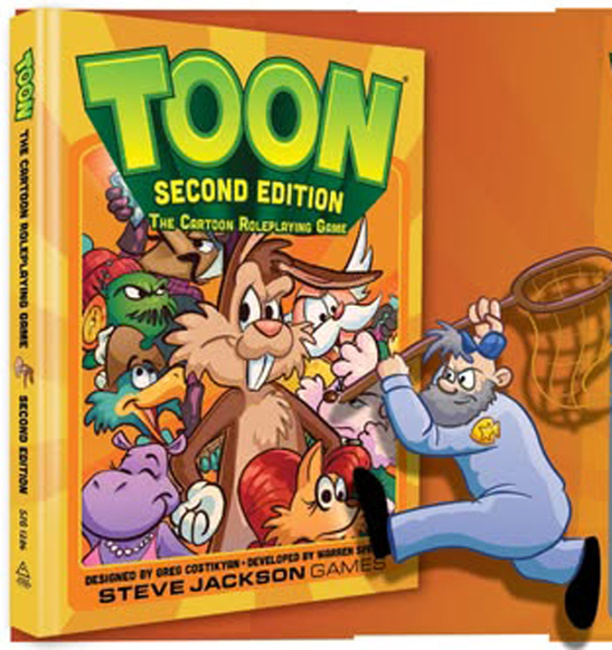 Toon: The Cartoon Roleplay Game returns after decades of dormancy. The original edition, designed by Greg Costikyan and developed by Warren Spector, was first published in 1984. In this game, GMs become Animators while the players take on the roles of the cartoon characters themselves. As with most cartoon characters, the player characters can never die; they just fall down and reappear in the next scene. The new edition, which was developed by Steve Jackson and Jay Dragon, features a streamlined character creation process as well as new rules that help Animators generate adventures faster.