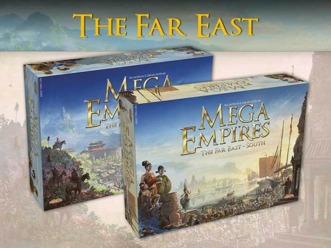 Mega Empires: The Far East – North covers the coastal regions of east Asia, including China, the Korean peninsula, and the islands of Japan.  Mega Empires: The Far East – South is focused on south-east Asia, the Malay Peninsula, Indonesia, and the Philippines.  A Silk Road expansion is also planned.