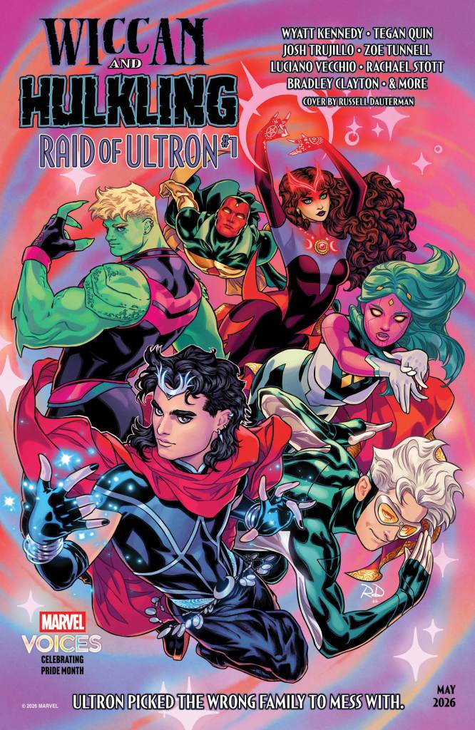 Announced last month, Wiccan & Hulkling: Raid of Ultron #1 brings together an incredible lineup of superstar LGBTQIA+ talent and rising stars, including stories by Wyatt Kennedy, Josh Trujillo, Luciano Vecchio, Zoe Tunnell, Rachael Stott, Bradley Clayton, and more! The saga will spotlight the importance of re-centering community in times of darkness as Wiccan and Hulkling join forces with their loved ones to defeat an evil villain bent on shattering their shared happiness!