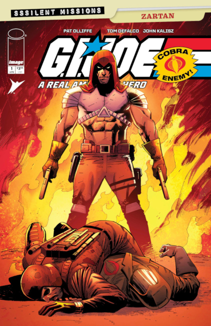 Publisher Description.  Skybound and Image Comics has revealed a first look at interior pages from G.I. JOE: A Real American Hero Sssilent Missions – Zartan #1, an all-new one-shot debuting for Skybound’s Silent Missions month as Cobra takes over!  Made by the iconic Spider-Man 2099 duo of writer/creator Tom DeFalco and artist Pat Olliffe, this issue arrives in comic book shops on April 15.